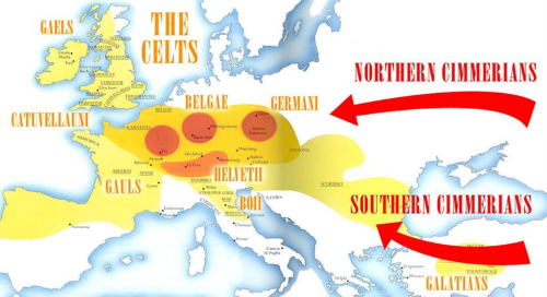 En lugar de adoptar el nombre de la tribu (Najor), tomaron el nombre del hijo del que derivaban, es decir, Kesed, y se convirtieron en los kesediym o caldeos. A medida que emigraban, pasaron a ser conocidos como los jaldi, los caldi, los keldi, los kelti, y finalmente el pueblo celta de Europa central. En Gran Bretaña, se les llamaría los juldees. Su calendario es el mejor ejemplo del disco de Coligny; sus marcadores de astrología serían la fijación del zodíaco, y las prácticas babilónicas incluirían el rito de fertilidad de Ishtar y el rito de fertilidad del solsticio de Nimrod.
